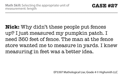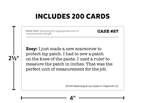 Students will love becoming math detectives! Players earn points for solving math mysteries in this entertaining and educational game. In each round, players read about a crime committed and each player receives a suspect's alibi. Players must determine whether the math in their suspect's alibi is correct or not. If the math is correct, the suspect is innocent, if the math is incorrect, the suspect is guilty of the crime. Each game requires players to use multiple grade-level math skills. Includes 40 math mysteries. The game can be played with 2-4 players and includes ideas for turning the game into a quick-and-easy math center. Set of 200 cards and directions.