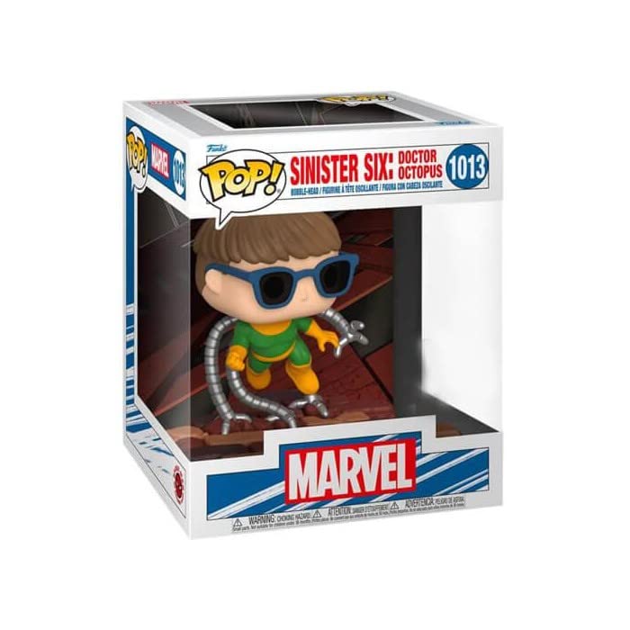 The Marvel Sinister Six series sets a whole new scene in your collection and it is exclusively available here. The Funko Pop! Deluxe Sinister Six series is comprised of 7 brand new unique figures, which have bases that nest together to form a larger set display. Collect all the Marvel Sinister Six Deluxe Pop! figures to see the full "picture" in your collection, starting with Deluxe Pop! Doc Oc. Vinyl bobblehead is approximately 4-inches tall and comes in a window display box.