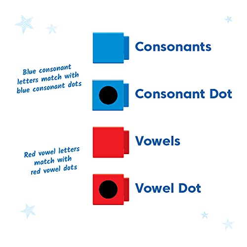 These scientifically based, multisensory tools help children learn alphabet/letter recognition, beginning/ ending sounds, sound isolation, and CVC words. Develop decoding, word building, and spelling skills with our hands on literacy reading rods. Our reading rods help with constructing CVC words, or consonant-vowel-consonant words for early readers as well as larger words for next steps. The color coded rods easily snap together. A hands on approach to early literacy skills! Comes with 60 color coded rods that include both letters and dots.
