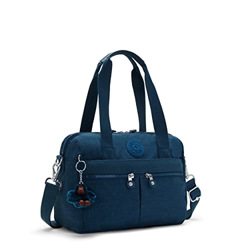 Kipling Women's Klara Handbag, Organize Accessories, Removable Shoulder Strap, Dual Carry Handles, Crinkle Nylon Bag, Night Teal Tonal