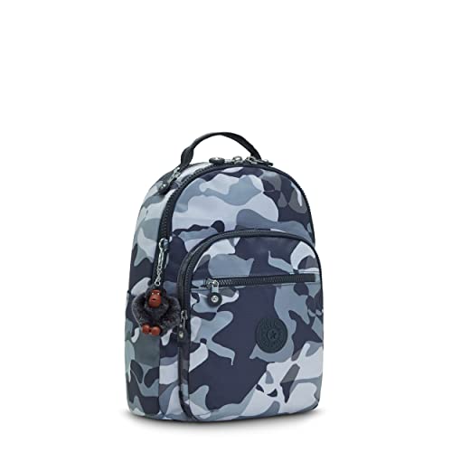 Kipling Women's Seoul Small Backpack, Durable, Padded Shoulder Straps with Tablet Sleeve, School Bag, Cool Camo Grey, 10.5''L x 13.75''H x 6.75''D
