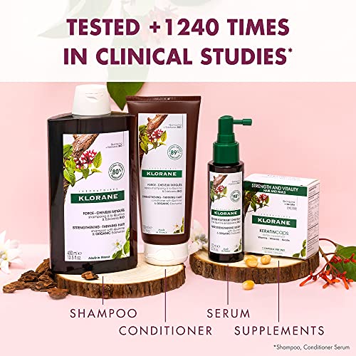 Klorane KERATINcaps Dietary Supplements with Biotin, Quinine, B Vitamins for Thicker, Stronger Hair and Nails, Caffeine-Free, Dye Free, 30 Day Supply