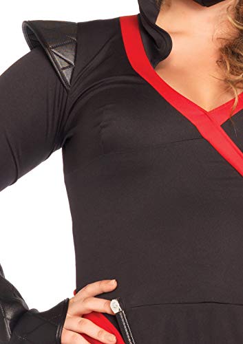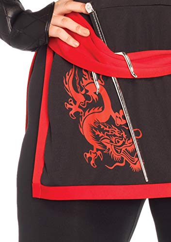 4 piece Ninja Assassin, includes hooded cross body top with dragon accent and attached sash, pants, arm gauntlets, and face mask.