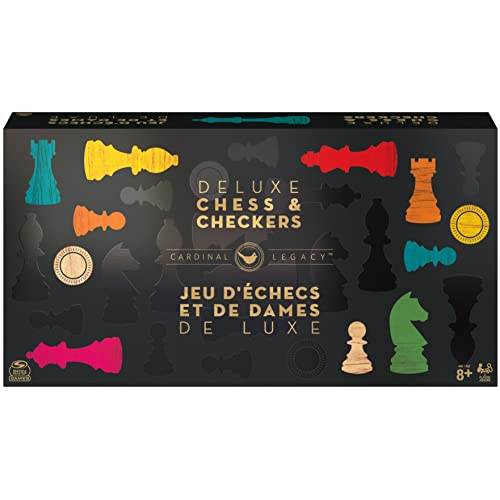 Legacy Deluxe Chess and Checkers Set, Classic Two Player Game Includes Folding Board with Solid Wood Playing Pieces, for Kids and Adults Ages 8 and Up