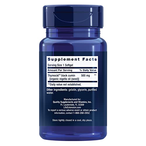 Life Extension Black Cumin Seed Oil 500 mg – Immune Support and Inflammation Management Supplement – Non-GMO – Gluten-Free – 60 Softgels