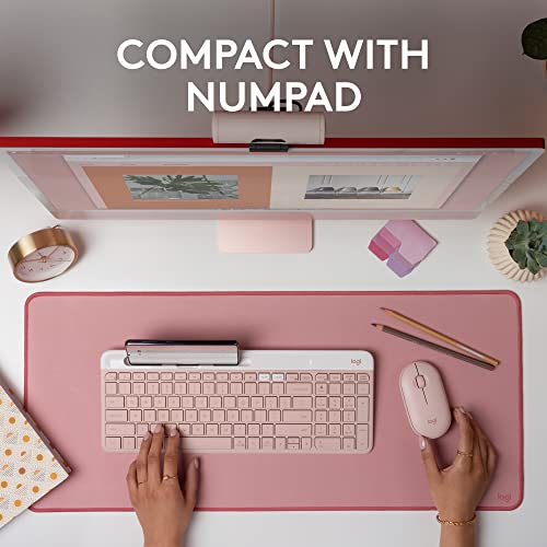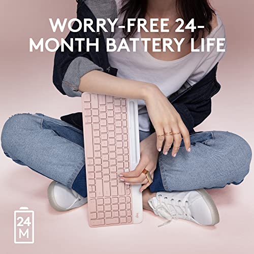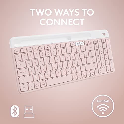 Logitech K585 Multi-Device Slim Wireless Keyboard, Built-in Cradle for Device; for Laptop, Tablet, Desktop, Smartphone, Win/Mac, Bluetooth/Receiver, Compact, Easy Switch, 24 Month Battery - Rose