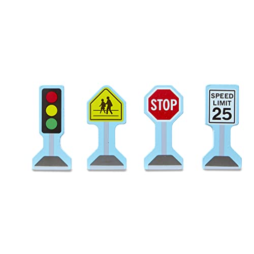 Melissa and Doug 18-Piece Wooden Take-Along Tabletop Town, 4 Rescue Vehicles, Play Pieces, Bridge