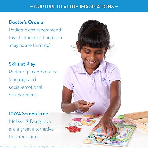 Combine dozens of magnetic wooden pieces in coordinating designs to dress a beautiful double-sided princess and her horse companion! The set includes 37 clothing and accessory pieces and durable stands for the princess and horse play figures, all of which store in a handy wooden take-along case with a slide-on lid and handle. Magnetic dress-up helps kids three and older develop fine motor, counting, and sorting skills, and encourages creative expression and imaginative play. Our Melissa & Doug dress-up clothes doll set helps to encourage creative expression and imaginative thinking. This magnetic dress-up set is an exceptional gift for kids ages 3 years and up. Add the Melissa & Doug Best Friends Magnetic Play Set to round out the pretend play experience and give kids another engaging option for screen-free fun. For more than 30 years, Melissa & Doug has created beautifully designed imagination- and creativity-sparking products that NBC News called “the gold standard in early childhood play.” Today, Melissa & Doug is proudly partnering with the American Academy of Pediatrics to foster early brain development and help children build important life skills through play.