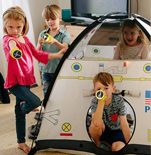 Pacific Play Tents Space Module Dome Tent takes your child's imagination to the moon, this dome tent is perfect for a backyard adventure or indoor fun on a rainy day. This tent has enough room for friends, toys and kid-sized furniture. Features a durable washable floor, mesh panels for ventilation and easy viewing. Our Super Poles are safety-coated to prevent splintering or shattering. Cleans easily with a damp cloth and mild soap. Includes carry bag.