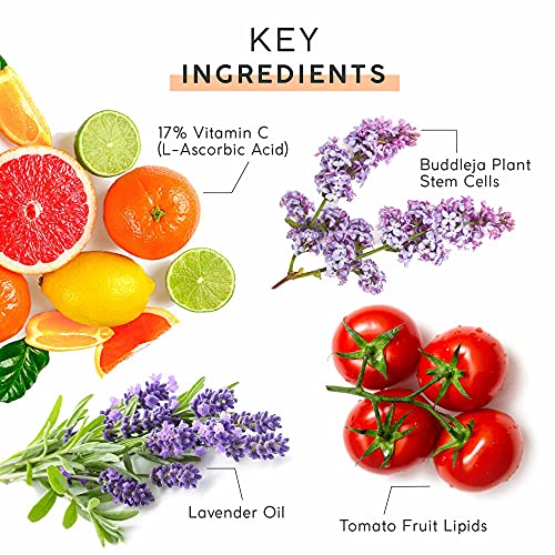 Advanced multi-tasking Vitamin C formula reduces the appearance of fine lines and wrinkles. A high active level of 17% L-Ascorbic Acid, the only effective anti-aging form of Vitamin C and Buddleja Plant Stem Cells that brighten skin, protects against photo-damage, and combats the visible signs of aging. 0.5 fl oz. Made without GMO, gluten, parabens, petroleum, phthalates, silicones, sulfates, ureas, artificial fragrances and artificial colors. This product is vegan friendly and cruelty-free. Ingredients: Hamamelis Virginiana (Witch Hazel) Water, Ascorbic Acid (L), Alcohol, Glycerin, Aqua (Water), Polyglyceryl-4 Caprate, Ergothioneine (L), Buddleja Davidii Meristem Cell Culture, Solanum Lycopersicum (Tomato) Fruit Lipids, Citrus Reticulata (Tangerine) Peel Oil, Lavandula Angustifolia (Lavender) Oil, Citrus Paradisi (Pink Grapefruit) Peel Oil, Elaeis Guineensis (Palm) Oil, Fructooligosaccharides (D-beta), Beta-Carotene (D), Glucosamine HCI (D), Wine Extract, Astaxanthin, Tocotrienols, Caprylic/Capric Triglyceride, Tocopherol (D-alpha), Ubiquinone (CoQ10), Benzyl Alcohol, Xanthan Gum, Linalool, Limonene, Citral, Geraniol