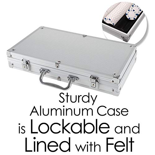 With the attractive dice design on the casino-quality chips, you won’t be gambling with value owning this Poker Chip Set, 300 Dice Style by Trademark Poker! This set includes a heavy duty but lightweight aluminum case that features a black velour interior to protect and organize chips with a classy look and feel. Whether you’re hosting poker night at home, preparing for your Vegas vacation, or just enjoy the real feel of casino quality chips during a friendly game of blackjack, this poker chip set is a win!