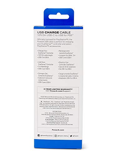 Keep your DualSense controller charged and ready for gaming with the officially licensed PowerA USB Charging Cable for PlayStation 5. This 10ft cable is perfect for charging your controller while your PlayStation 5 console is on standby or even while you play. Made with high-quality materials, this USB Charging Cable was designed to last.