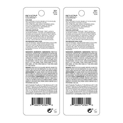 Revlon ColorStay Pencil Eyeliner with Built-in Sharpener, Waterproof, Smudgeproof, Longwearing Eye Makeup with Ultra-Fine Tip, 201 Black, 2 Pack