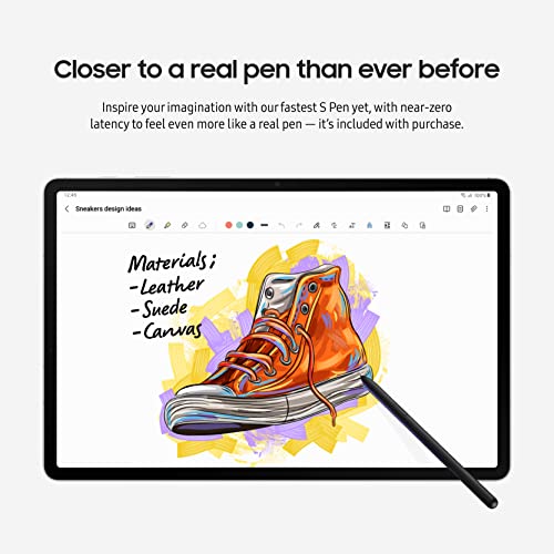 Meet SAMSUNG Galaxy Tab S8+, a premium tablet that helps you get more done on the go. Whether you’re working, catching up on your favorite series on your commute or chilling with your favorite game, get it all done smoothly and quickly no matter where you are with superfast Wi-Fi 6E.* Prepare to be blown away by a large, 12.4" display that gives you more out of every moment with an sAMOLED screen that delivers brilliant clarity and ultra-smooth views, even in broad daylight. Your video calls just got a big upgrade too. The large screen helps you feel closer to who you’re talking to, and a dual camera with auto framing keeps the spotlight on you. If you’re looking for a tablet that helps you level up productivity, Galaxy Tab S8+ delivers. The large display creates more space to work with the option to open and toggle multiple windows for enhanced productivity. We also made S Pen faster, so it feels more like a real pen — sketch and convert your handwriting to text and automatically sync with your Galaxy phone in Samsung Notes. You can also snap on a keyboard to work on multiple windows and apps all at once with Samsung DeX. And when it comes to power and storage, this premium tablet piles it on with an upgraded Qualcomm Snapdragon chipset and up to 256GB of storage. Samsung Kids offers a library of fun games, books, and videos that are safe, kid friendly, and parent approved. Smart Switch helps you safely move files from your new Galaxy Tab S8+, no matter what operating system you’re switching from. Expand your storage up to 1TB with a microSD card***. Hold Galaxy Tab S8+ in your hands and unleash the power to do more. *Wi-Fi 6E enabled router required. Sold separately. **When using the included cable. Battery life may vary depending on usage patterns and other factors. ***MicroSD card sold separately.