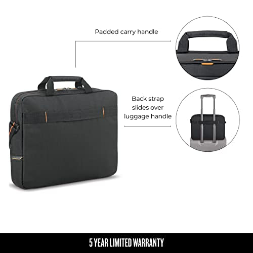Solo Urban Device Slim Brief’s padded compartment protects devices up to 15.6” and provides carrier with dedicated interior pocket for other devices. The quick access pocket and front zip down organizer section make it easy to stay current with your workload. Rear Ride Along feature for consolidated travel makes it easy to get and go! Comes with 5 year warranty.