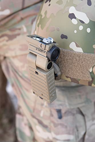 Sidewinder, the most versatile military light in the world. Twenty flashlights in one! Each LED features 4 levels of output intensities: Low (5 Percent), Medium (20 Percent), Medium-High (50 Percent), High (100 Percent) plus a Strobe function (100 Percent). One switch for On-Off, dimming and mode selection functions. Pull-to-turn locking rotary color(4)selector knob with tactile indicator for easy operation with gloves. Double click button to initiate strobe function from "Off" position. Push and hold button for light output levels from "Off" position. Also accepts 2 "AA" lithium batteries, which allow extended operation, or extreme temperatures (-40 DegreeF - 150 DegreeF). Mounts to MOLLE or ACH for hands-free use. High-impact, super-tough nylon case. Battery polarity indicators for easy replacement in the dark. Unbreakable, gasket-sealed polycarbonate lens with scratch-resistant coating, o-ring sealed for waterproof operation. Meets MIL-STD-810F, Method 512.4. Tethered tailcap to prevent loss. Cord attachment hole supports up to 25 lbs. Articulating 185 Degree rotating head. Spring steel clip attaches to MOLLE or belt, clip can be mounted on either side of the light. Dimensions: 4.63-Inch High; 2.31-Inch Wide, Weight: 4.96 ounces. Available in Coyote Tan and Green. US and foreign patents pending. One year limited warranty.