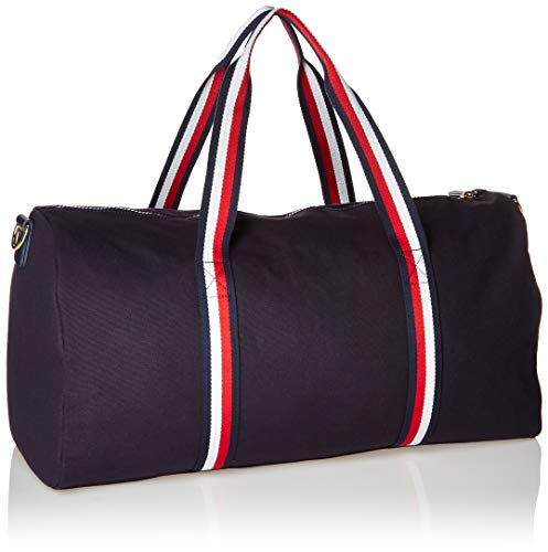 Duffle bag for women featuring our classic tommy signature stripe and top zip closure. Lined nylon interior and gold tone hardware. 2 interior pockets and 1 slip pocket. This Tommy Hilfiger canvas duffle is a versatile essential, the perfect durable bag. Our classic duffle for women is your go-to bag for a weekend getaway.