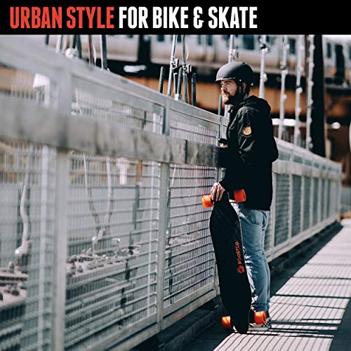 The Triple 8 Gotham Dual Certified Skateboard and Bike Helmet is the perfect blend of comfort, safety, and good looks. Dual-certified for both bike and skate, and its innovative Conehead EPS liner offers additional protection with collapsing cones that act like a crumple zone to absorb the energy from a crash and spread the force sideways within the helmet liner. An ABS shell, with an urban profile and subtle brim, features Triple Eight logo vents for maximum airflow. Ideal for biking, skateboarding, rollerblading, roller derby, and commuting, the helmet complies with U.S. CPSC Safety Standard for Bicycle Helmets for Persons Age 5 and Older and ASTM F-1492 Skate safety standards. Includes two sets of removable, washable terrycloth Sweatsaver Fit Pads, an adjustable dial system, and chin strap with side release buckle for customizing the fit. Available in three sizes: Size XS/S fits 18.9 – 21.3 in (48– 54 cm), S/M fits 21.7 – 22.8 in (55 – 58 cm), L/XL 23.2 – 24 in (59 – 61 cm). To determine proper size, measure using a soft measuring tape or string.