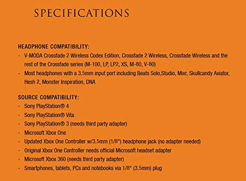 Source Compatibility: Sony PlayStation 4 Sony PlayStation Vita Sony PlayStation 3 (needs third party adapter) Microsoft Xbox One Updated Xbox One Controller w/3.5mm (1/8") headphone jack (no adapter needed) Original Xbox One Controller needs official Microsoft headset adapter Microsoft Xbox 360 (needs third party adapter) Smartphones, tablets, PCs and notebooks via 1/8" (3.5mm) plug
