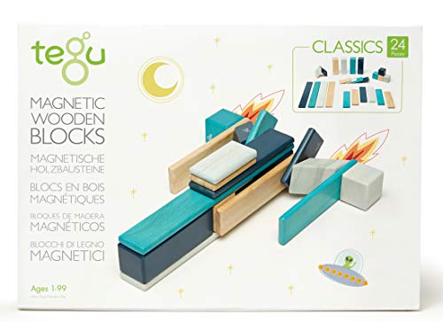 24 Piece Tegu Magnetic Wooden Block Set, Blues, 1-99 years old