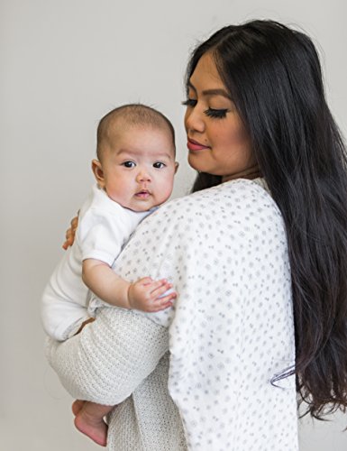 Amazing Baby premium quality muslin swaddles get softer with every wash. The Swaddle Studio features 2 coordinating prints plus one full-size print designed to be used as a backdrop for your baby’s photos. In addition, the large full-size print could be used as a decorative wall hanging or over the stroller, a privacy throw or playmat for tummy time. Exclusive designs by artist and mom, Lynette Damir. Rest easy when your baby is lovingly swaddled in premium 100% cotton muslin. The open weave increases breathability and reduces the risk of overheating. The generous size and square shape makes swaddling easy as 123. 46 x 46 inches (116 x 116 cm). Machine washable. Designed and manufactured by SwaddleDesigns.