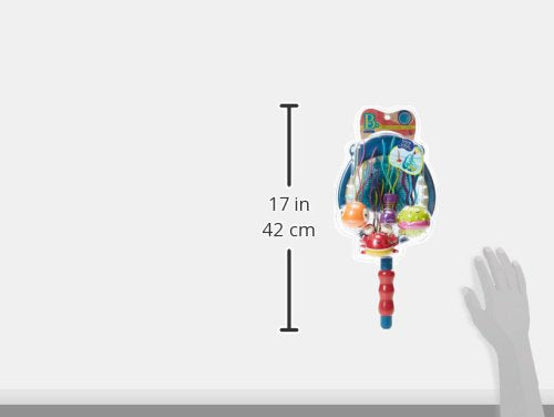 Toss them in, scoop them up! It's snack time at the drive-in with Finley the shark scoop-a-diving set from b toys. High-quality materials and a funky design on a classic pool game every child will enjoy playing on a hot summer day. One of the best pool water toys for toddlers, this scoop-a-diving set features a Shark pool toy net with an easy-grip handle and 4 Shark snacks easy to fetch by their rubbery grassy hair. Scoop or grab, there's plenty for everyone with a pufferfish, a Goldfish, a crab and a boot! Watch your child get better and braver each time he dives in shark attack! Creates a beautiful scenery at the bottom of the pool! So, grab your goggles and toss them in! This diving toy promotes summer active play, Helps develop coordination and improves swimming skills. This summer toy for kids is completely safe. Recommended for anyone over 3 years old. B. Splashy B. Divey B. Swimmy B. Speedy B. You