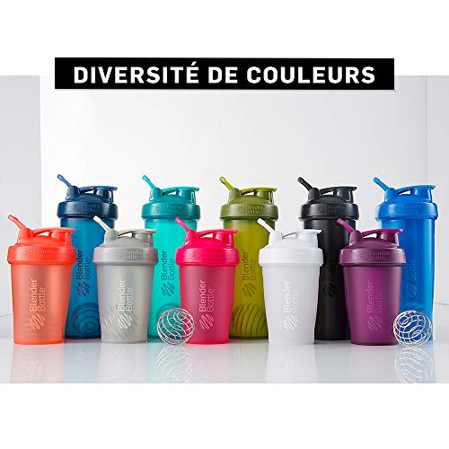 The BlenderBottle Classic 20-Ounce Shaker Bottle makes it easy to maintain proper nutrition and hydration on-the-go. Featuring a patented mixing system—with a 316 surgical-grade stainless steel BlenderBall wire whisk (found only in BlenderBottle brand shaker cups) that moves freely inside the bottle to smooth out drink mixes and meal ingredients—it’s ideal for protein shakes, smoothies, fiber drinks, and meal replacements. It’s also a handy kitchen tool for mixing pancake batter, scrambled eggs, and salad dressings. The wide mouth makes it easy to add scoops of powdered mixes, meal ingredients, and liquids, and embossed markings show both ounces and milliliters for easy measuring anywhere (note that markings on the 20-ounce capacity shaker cup only go up to 12 ounces). Bottle contents and liquids are securely contained thanks to a tightly threaded screw-on lid that creates a leakproof seal, and a flip cap that snaps securely shut for shaking and transportation. The convenient loop top makes it easy to carry the bottle and offers a place to attach car keys while at the gym. The BlenderBottle Classic 20-Ounce Shaker Cup can also be used as a water bottle; the ball can be left inside, as it will never rust, chip, or peel. BPA and phthalate-free, dishwasher safe..