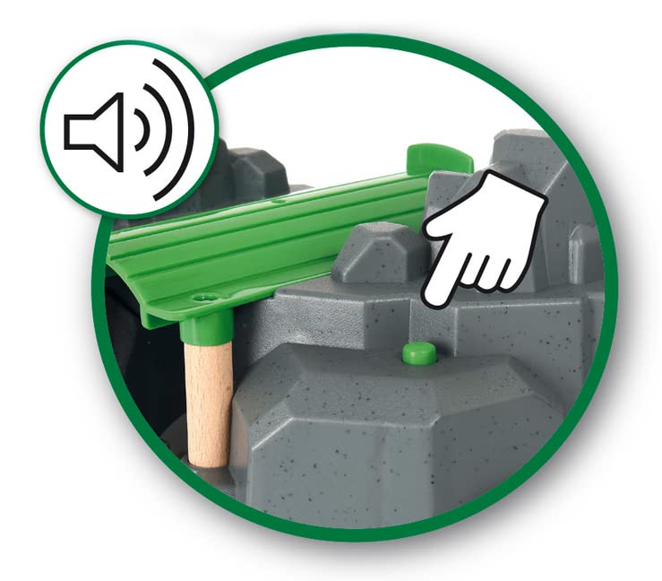 Product Description Every corner of the 33889 crane & mountain tunnel offers something new to discover. Crane and mountain top can be lifted off and placed on track separately for dual functionalities. In addition to the dual level railway passage and a majestic crane on top, four different sounds activate when the train is passing through the mountain. This crane and mountain tunnel is a treasure trove of playful function and design - you might even find some gold! Suitable for ages 3 years and up. Manufactured to BRIO high standards and from FSC certified wood. Each set is fully compatible with other BRIO sets, tracks and trains. BRIO products are made from very high quality plastic and beech wood from sustainable sources. The trains, wagons, carriages, and road vehicles all feature the classic BRIO magnetic couplings allowing for easy connection to each other. Set Contains: 1 x World Crane and Mountain Tunnel Playset