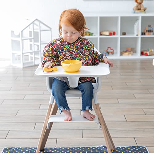The Bumkins Sleeved Bib saves one outfit at a time. With a handy crumb catcher / catch-all pocket for containing spills. Generously sized and made from Bumkins’ original lightweight waterproof fabric. Wipeable and machine washable for easy cleaning so you can use it over and over again. Plus, it’s safe to use. Our bibs are BPA-free, PVC-free, vinyl-free, phthalate-free and lead-free. Sized to fit ages 6 to 24 months. Adjust fit with back tie closure and adjust sleeve length with the elasticized cuff. Measures approximately 14” across the chest, 13” from neck down and 32” from cuff to cuff. Designed in Arizona, responsibly made in China.