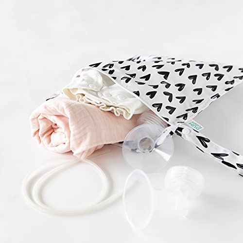 Bumkins Waterproof Wet Bag, Washable, Reusable for Travel, Beach, Pool, Stroller, Diapers, Dirty Gym Clothes, Wet Swimsuits, Toiletries, 12x14 – Black Hearts