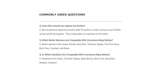 The world continues to change right before our eyes. But why is it that baby bottles are the same old unflattering tools? After all, isn't the baby bottle one of the first objects that your baby experiences through all five senses? Why should mothers have to worry about toxic plastic & colic-inducing design for something so basic & important? We found no good reason & decided to challenge the status quo. In our voyage, we've learned an important lesson. Inspiring products are born only when we think with a mother's heart & experience through a baby's eyes. We proudly introduce Comotomo Natural-Feel Baby BottleTM. Comotomo Baby Bottles feature innovative and sensible design to most closely mimic natural breastfeeding. Our naturally shaped, soft, silicone nipples are ideal for babies who have trouble transitioning from nursing to bottle-feeding. Your little one will love to hold onto the skin-like, soft and squeezable body that is like no other bottle in the world. And you will fall in love with our wide-neck design for brushless, stress-free, cleaning bliss! Our bottles are equipped with truly innovative vents that are smartly designed to prevent colic, while completely eliminating annoying leaks. They are quite possibly the most thoughtful bottles ever made. *8oz bottles come with medium flow nipples (2 holes) designed for 3 months to 6 months. Easy Feedings, Happy Baby: - Naturally shaped, squeezable, soft, skin-like silicone – Ideal for breast-fed babies - Innovative & non-leaking anti-colic vents - Unique interlocking feature and no-drip design Easy to Clean: - Wide-neck design for easy, brushless cleaning - Safe in: microwave, boiling water, dishwashers and sterilizers Safe Feeding: - 100% safe materials: BPA, PVC, Phthalate free. Do not use soothing teats as a soother