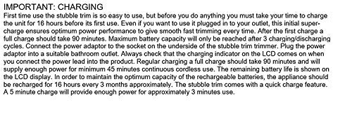The Conair for Men i-Stubble features floating head and advanced blade technology to trim stubble, beards, mustaches and goatees with accuracy and comfort. 24 settings ensure custom results and the soft-grip rubber handle makes this trimmer easy to hold and use. The i-Stubble's ultra-precise length settings allow you to maintain your preferred facial hair style at all times.;The product is multiple voltage compatible, that voltage arrange is 100-240V
