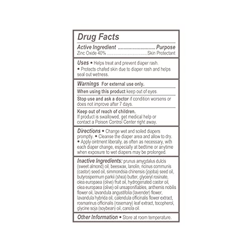 Burts Bees Baby 100% Natural Diaper Rash Ointment has protecting properties to treat and prevent diaper rash. Its 100% natural origin with 40% zinc oxide, the maximum strength needed to seal out moisture that can irritate your babys bottom. This diaper rash ointment nourishes and reconditions skin naturally with shea butter, lavender oil and jojoba seed oil while creating an emollient layer to absorb wetness leaving babys skin soft, dry, and smooth. Pediatrician-tested and safe for your babys delicate skin. This ointment is formulated with no parabens, phthalates, petrolatum or SLS and is not tested on animals. Nurture and protect your babys skin naturally with Burts Bees Baby Bee.
