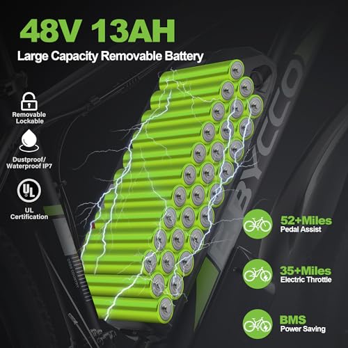 🚀🚀【750W/48V Ebikes】:The 750W(Peak 1000W) powerful motor supplies Ebycco 29" ebikes for adults with great power and climbing abilities. Its fastest speed reaches 32MPH depending on the battery charge, road conditions, and rider weight. High quality brushless motor also make the adult electric bicycle a breeze to climb hills (Up 30° steep hill easily).,🚀🚀【UL Listed/48V13Ah Removable Battery】: The adult electric bicycle riding range up to 32-50+miles, it can be fully charged within 6-7 hours. The battery of this 750W Electric Bike is not only removable but also waterproof to ensure that it can be ridden on rainy days and on muddy roads. UL Tested and IP7 waterproof ensure safety.,🚀🚀【29inch All Terrain Electric Bicycle】:Designed with 29x2.1inch anti-slip tires, EBycco electric hybrid bike fits Man or Women over 5.5 feet. 29" Larger tires have a greater ground contact area,which excellent for a variety of roads, whether cycling to work, spending quality time with family or friends on the weekend while riding on the mountains!,🚴🚴【5 Riding Modes & Intuitive LCD Display】:This has 5 riding modes: Normal Riding/Pedal Assist/Ful Throttle/Cruise Mode/Walking Assist. Pedal Assist has 5 different levels. This e mountain bike is equipped with intelligent waterproof LCD to adjust the Pedal-Assist Level, display essential information such as Speed, Level of Assistance , Battery Life, Trip Distance.,🚴🚴【Professional Bicycle Accessories】: The 29" adult electric bicycles comes with Upgraded 6061Aluminum-Flame, 21 Speed Gears, Durable Suspension Fork to help you get through bumpy roads easily. Front and Rear Mechanical Disc Brakes provide you with reliable braking power on steep hills. This electric bike also comes with LED Headlights, Fender Set and a USB Phone Holder for charging and place your phone.,🚴🚴【90% Assembled and Great Customer Support】Please refer to the installation video on the webpage. The package includes the bike, installation tools, charger, keys, and a manual. Assembling the 95% built bike is quite simple.If you encounter any issues, please don’t hesitate to contact us. 😃😃【TIPS】: Please keep the original package for 30 days at least in case for any issues of bike return.,🌟🌟【Upgrade】: The electric bike upgrade is based on the feedback and experience of buyers! We upgraded the tires and inner tube of the electric bicycles and upgraded mechanical brakes, rear derailleur, and chain!