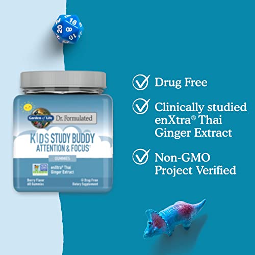 Help your kids get the most out of their learning years with Garden of Life Dr. Formulated Kids Study Support Gummies†. Our study support blend includes bluberry, grape seed and Organic Acerola cherry extracts, as well as Clinically studied enXtra Thai Ginger Extract (Alpinia galanga, a plant in the ginger family), offers a drug-free, convenient way to help kids stay alert and focused on the task at hand†. These study buddy gummies for kids promote sharper focus and alertness† to help your kids accomplish more. Each delicious Apple flavored gummy is vegetarian and Third-Party tested and Certified Non-GMO Project Verified and NSF Gluten Free. †These statements have not been evaluated by the Food and Drug Administration. This product is not intended to diagnose, treat, cure or prevent any disease.