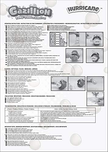 The Gazillion Bubble Hurricane is Gazillion’s number one bubble machine! Year after year, this bubble machine cranks out thousands of bubbles for kids of all ages. Each Bubble Machine comes with an 8 oz. bottle of top secret Gazillion Bubble solution, just pour the solution into the reservoir attached to the Bubble Machine to continuously feed the wands creating a storm of colorful bubbles.
