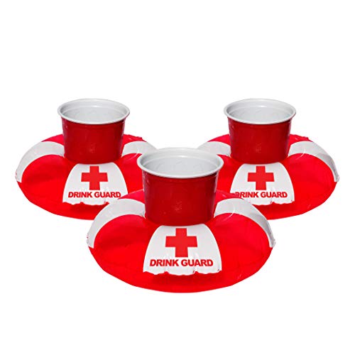 Conveniently float your drinks in style with the Drink Guard Float 3 pack. The Drink Guard will always be on duty to ensure your drink is within hands reach and will not tip over. The floating drink holders fit almost any size cup or beverage so you will always have your drink by your side. The extra high side walls mean the raft will not tip over, unlike many of the other low-cost imitators. Perfect accessory for any pool or hot tub.