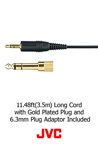 Product Description JVC FULL SIZE Headphone. 11.48ft(3.5m) cord with gold plated plug. Frequency Response: 10 - 22,000 Hz, Maximum Input Capability: 1200mW (IEC) Amazon.com These JVC Full-Size Headphones feature a comfortable, cushioned headband and a large 40mm driver for faithful sound reproduction. They have a twist-action structure suitable for long listening sessions. A corrosion-resistant, gold-plated plug ensures excellent signal-transfer.
