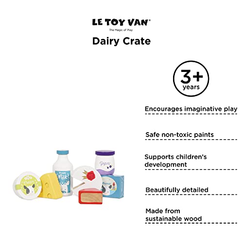 Le Toy Van - Wooden Honeybee Market Cheese and Dairy Crate | Wooden Market Stall Food | Supermarket Pretend Play Shop Food (TV185)