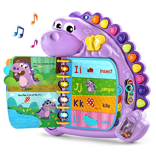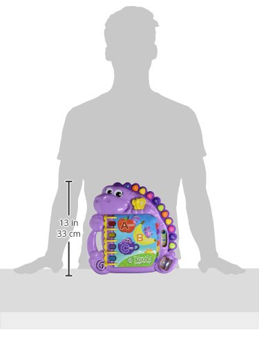 Learning the ABCs is a great way to spend the day! Read about Dino's day while learning the alphabet in Dino's delightful day book. Letters and words are woven into the story in alphabetical order with phonetic sounds to introduce ABCs to your little one through a charming tale. Flip through the 16 interactive pages to hear the story read aloud, or enjoy musical play by jamming to a melody with fun sounds and musical notes. Press the light-up button to hear letter names, letter sounds and words from the story. Number buttons along Dino's back introduce counting and recognizing numbers from one to ten. This complete story with beginning, middle and end exposes your child to early reading skills. It's a great day, from a to Z!