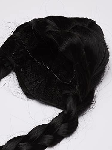2 piece Gothic darling, includes classic collared dress and matching braided wig with satin bows.