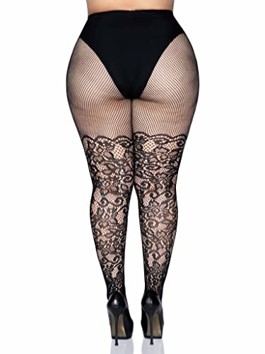 Leg Avenue Womens Plus Size Floral Vine Fishnet Tights, Plus Size, Black