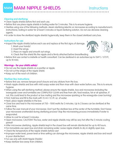 MAM nipple shields provide protection for mom's sore nipples during breastfeeding. MAM size 1 nipple shields are designed for nipples up to 17 mm in diameter. MAM nipple shields have a very thin natural SkinSoft silicone surface which fits perfectly on mother's breast and allows for maximum skin contact between mom and baby during breastfeeding. The textured surface is especially gentle on baby's skin and allows air to flow between baby and the nipple shield. Nipple shields should always be used under the care of a lactation consultant or a medical professional that specializes in breastfeeding. Parenting is hard. We make stuff to make it easier. MAM knows that being a parent is not always easy, so we make products that are smart and simple to use. For over 40 years we've been obsessed with making innovative pacifiers, bottles, cups, teethers, and toothbrushes, providing babies with optimal care at all stages.