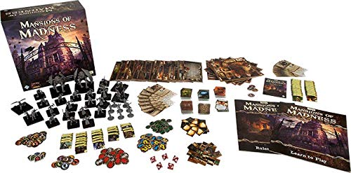 Mansions of madness second edition is a fully cooperative, app-driven board game of horror and mystery for one to five players that takes place in the same universe as eldritch horror and elder sign. Explore the veiled and Misty streets of innsmouth and stumble through the haunted corridors of arkham’s cursed Mansions as you search of answers and respite. Dive into the required app to confront scenarios of fear and mystery, collecting weapons, tools, and information, solving complex puzzles, and fighting monsters, insanity, and Death. Open the door and step inside these hair-raising Mansions of madness second edition. It will take more than just survival to conquer the evils terrorizing this town.