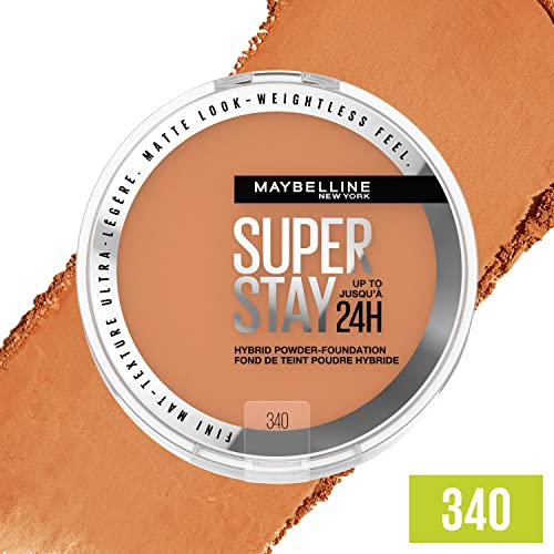 Maybelline Super Stay Up to 24HR Hybrid Powder-Foundation, Medium-to-Full Coverage Makeup, Matte Finish, 340, 1 Count