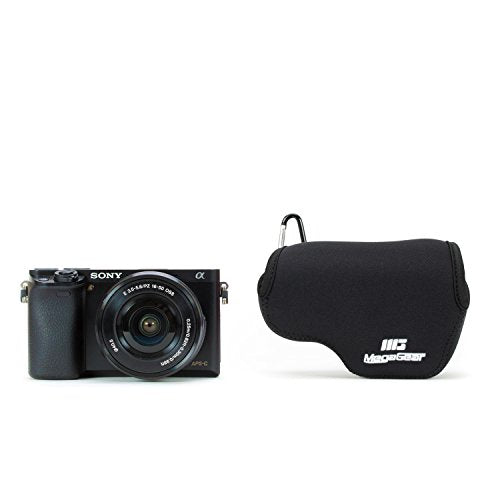 MegaGear MG064 Ultra Light Neoprene Camera Case Compatible with Sony Alpha A6400, A6500, A6300, A6000 (16-50 mm)-Black (MG063)