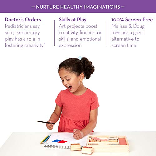 Melissa and Doug Wooden Stamp Set: Vehicles - 10 Stamps, 5 Colored Pencils, 2-Color Stamp Pad