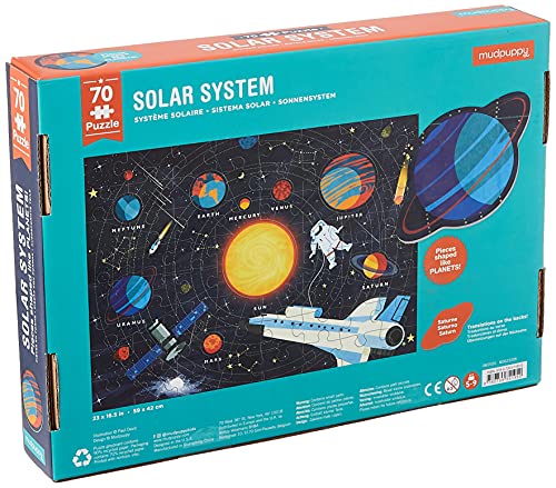 Mudpuppy Solar System Puzzle, 70 Pieces, 23”x16.5”, Great for Kids Ages 5-9, Learn the Solar System with Planet-Shaped Puzzle Pieces, Double-Sided Space Puzzle with Planet Names