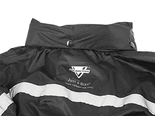 Nelson Rig SR-6000-ORG-05-XX XX-Large Orange Stormrider Motorcycle Rain Suit is 100-Percent waterproof. It features a soft polyester outer shell with PVC backing. Jacket includes a full-length zipper, self-fastening storm flap, 2 large outer pockets and cooling vents under each arm. Jacket features a soft corduroy inner collar with hood, elasticized waist, and adjustable cuff with self-fastening tabs. Pants include oversized zipper gussets, elasticized boot stirrups, waistband, and cuffs. Reflective striping on both jacket and pants are designed to provide night visibility. Rain suit is covered by an exclusive 2-year warranty.