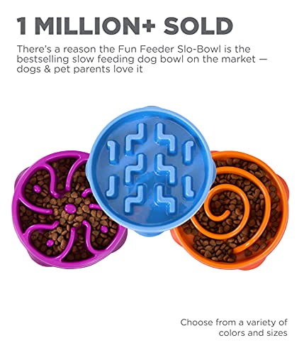 Fun Feeder Dog Bowl. Dog bowl with unique designs to prevent dogs from eating too quickly. Reduces bloating.
